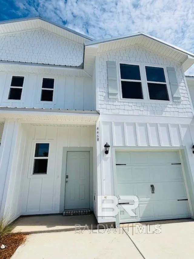 MOVE-IN READY Coastal Dream home. Ready for primary residents or investors. In house mortgage team offering special rate incentives plus builder offering $ towards closing. PLUS, 5k for blinds, fridge, washer/dryer. Welcome to the Palm, at our brand-new townhome community of Lost Bay in Orange Beach, Alabama! Here you will enjoy peace and quiet along with the convenience of being just 5 minutes to private beach access/parking for Orange Beach residents, Orange Beach City schools, the Wharf (shopping, dining and concerts), Orange Beach Rec center (pool, tennis. gym), OB Golf Center, and an abundance of shopping and dining, and the Beach Express offering a quick commute. Why squeeze in a tiny space elsewhere? Here you get 1437 sq. ft 3 bed/2 full bath upstairs plus oversized half bath down. 9' ceilings down with upgraded coastal trim, granite counters throughout. Single car garage to store beach supplies, golf cart, jet ski, etc. HOA includes water, sewer, trash, lawn, irrigation and more. Schedule a tour to find your coastal home at Lost Bay today. Buyer to verify all information during due diligence.