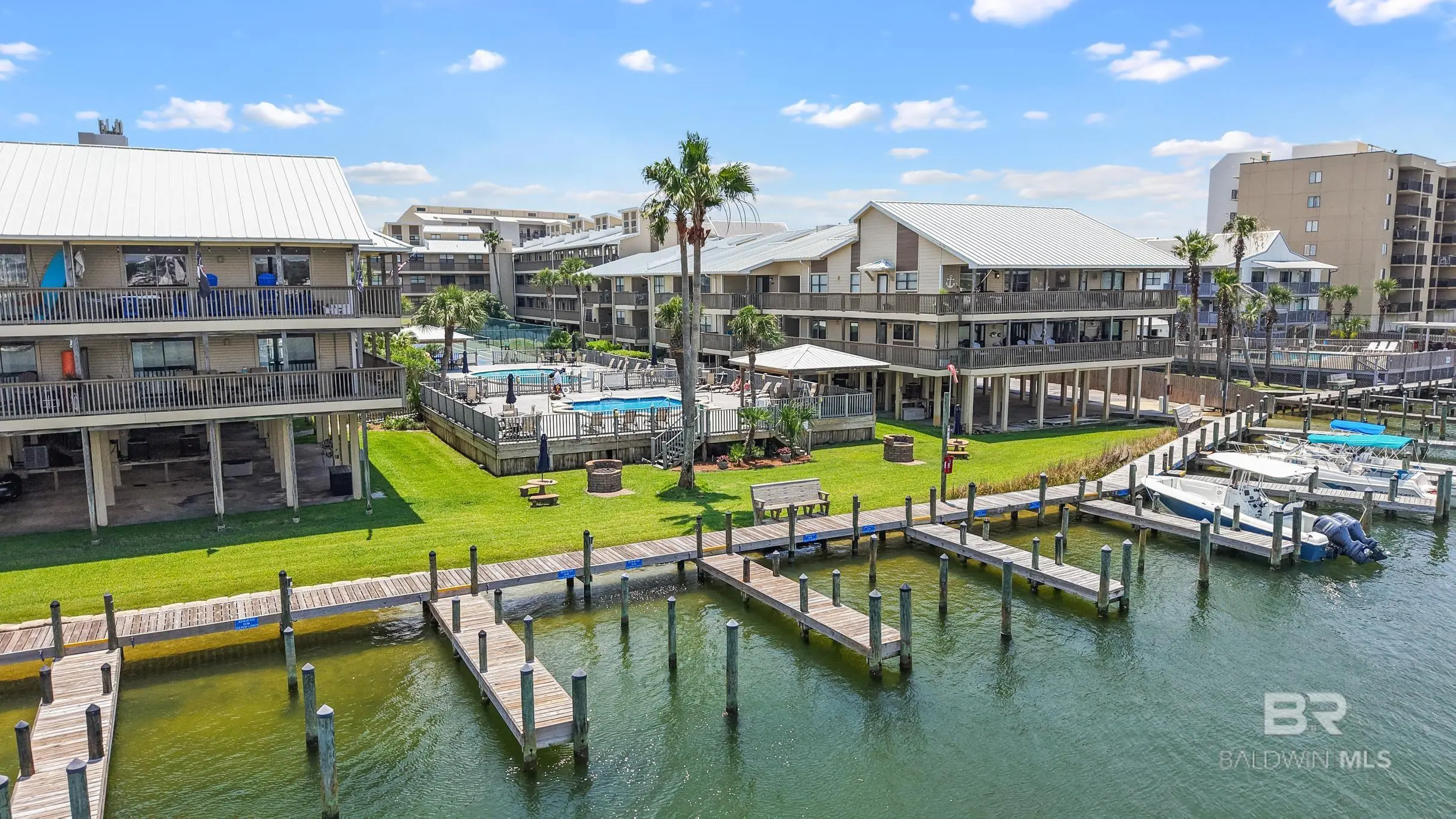 Step into coastal comfort with this beautifully updated condo at Ole River Condominium! This complex has a 30 day rent restriction allowing for a slower pace community of owners on Old River with a front-row seat to the passing boats! Owners and Guests enjoy nearby deeded access to the beach, as well as a variety of on-site amenities including the renovated dock with first-come, first-serve boat slips, covered fishing area and cleaning station, covered parking for two vehicles, two outdoor swimming pools, tennis courts with pickleball court lines, shuffleboard, kayak and paddle-board storage, and two elevators. The river is ideal for kayaking, paddle-boarding, fishing, swimming, and boating with quick access to the Gulf of America, Terry Cove, Robinson Island, and numerous waterfront restaurants.Unit 104 offers a low-maintenance lifestyle in a location that puts you close to both the water and local attractions. Whether you're spending the day on the water or relaxing by the pool, this unit delivers a functional and stylish home base in the heart of Orange Beach. HVAC was replaced with a new high efficiency unit with built in dehumidifier. Complex is less than 1 mile to the world famous FloraBama! Buyer to verify all information during due diligence.