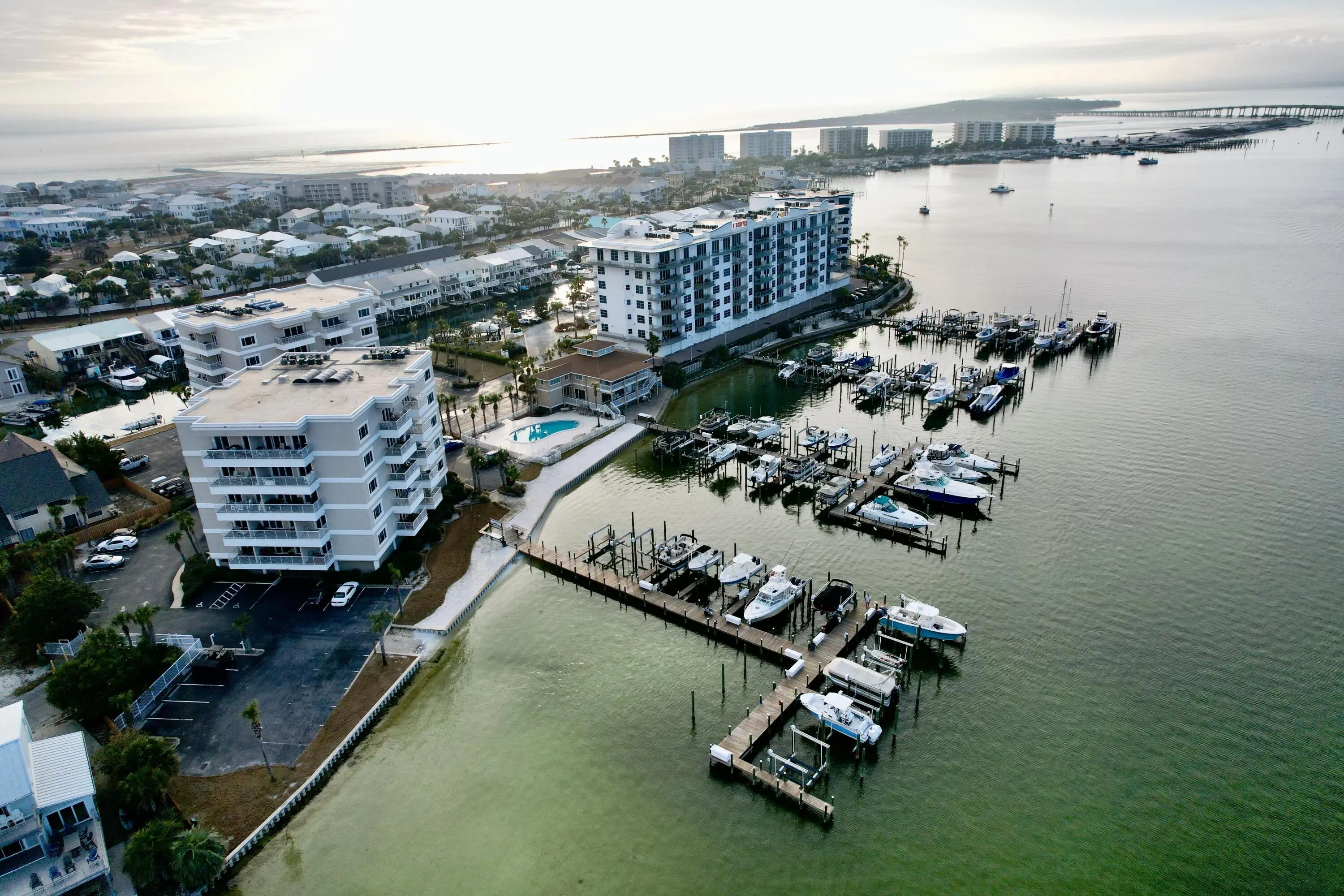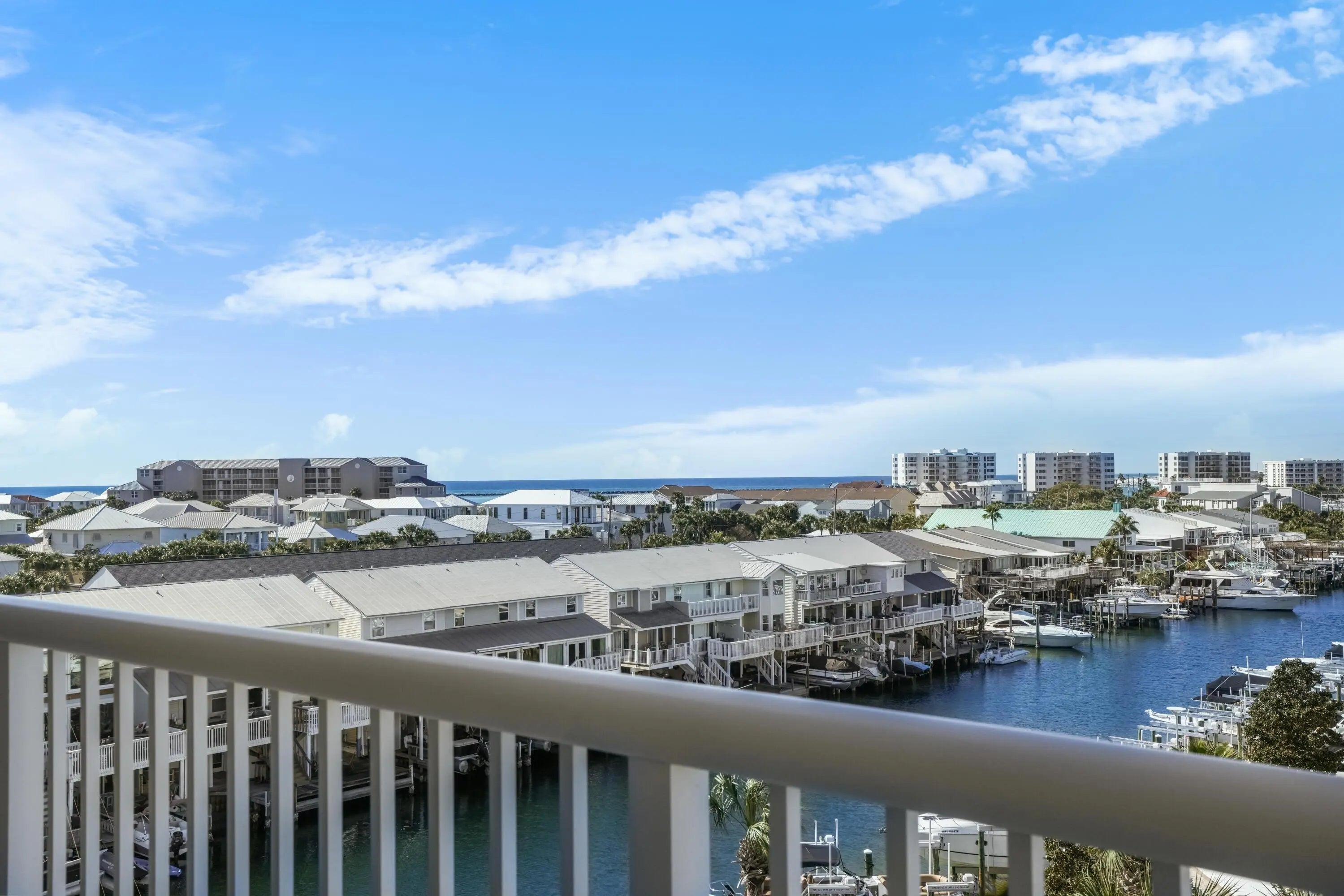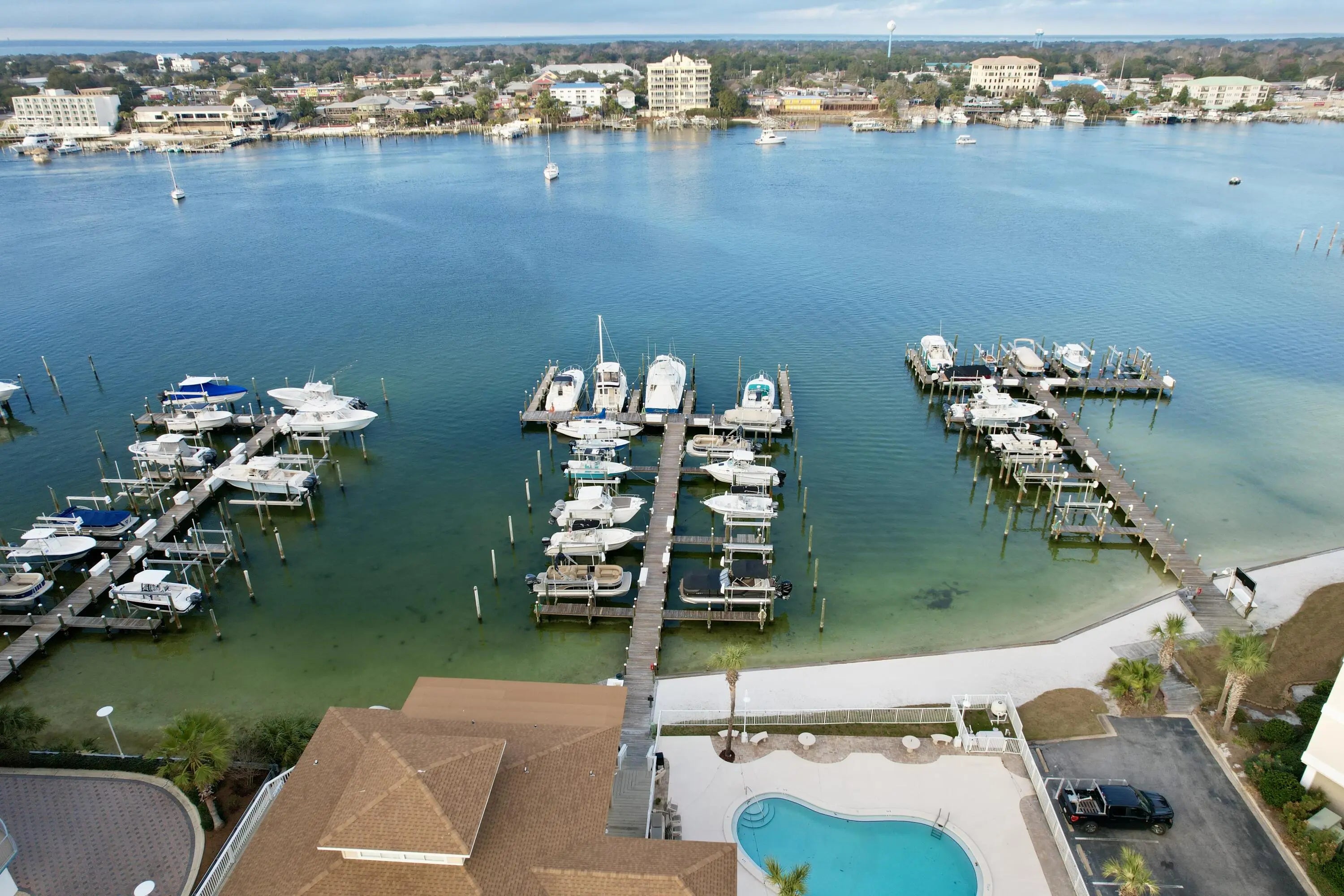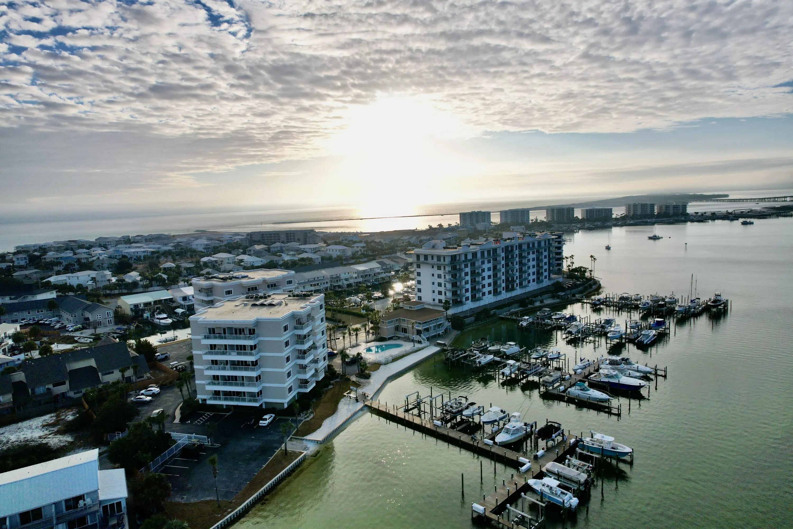Welcome home to your meticulously maintained, Stunning 5th floor condo providing you with the finest lifestyle Destin has to offer including Beach & Boaters Paradise! Potential boat slip based on availability upon purchasing this condo at Sun King for your Boat! Hop on your vessel & you're Just 5 minutes to Crab Island & the Destin Pass, Gulf of Mexico & the Intercoastal with a plethora of fun to be had fishing & boating! The Beach is rather your thing? No Sweat, 2 private deeded beach accesses as well as 2 other public beach accesses are a very short distance away! Walk, Bike or take the golfcart to the beach easily! Not only are the views spectacular from this condo you can even watch the flight shows & fireworks right from your balcony! Prepare to be awestruck the moment you walkin the door of this unique condo encompassing so many unparalleled details. Custom cherry full height cabinets adorn the kitchen complementing the gorgeous marble countertops in this open kitchen with tons of storage. Perfectly flowing into the living room with views stretching across the beautiful harbor waters. You can't miss the elegant wood detail on the ceiling in the living room & master bedroom. Unique to this unit, the owner was grandfathered in with stunning tile on the balconies creating the seamless flow from inside to outside. Both master & guest bedrooms have superb water views & hurricane rated glass sliders welcoming you onto the spacious balcony. With Views facing South, West and North, this retreat presents you with the most Spectacular Scenes of Destin's East Pass & the Gulf of Mexico as well as the Harbor! So fun watching the dolphins right from your window or the boats come & go all day! Spend mornings sipping coffee on the large balcony as you watch all the fishing boats head out the pass for a day of angling in our famous plentiful waters & after a fun day in the sun at the beach, in the pool or on your own vessel come home to breathtaking sunsets in your private oasis, or out on the boat for a sunset cocktail cruise watching the picturesque sky display breathtaking colors over the emerald green waters this area is famous for. This rental restricted community is convenient to shopping, dining, entertainment, boating, fishing, kayaking, paddleboarding, all the things to enjoy your new beach life within a short walk or drive. You can even take your golfcart around Holiday Isle or across to nearby shopping & restaurants! Stroll down to your poolside and jump on the water taxi from the docks for a ride to Harborwalk Village or any other harbor front establishment, they even run late night to get you home safely after an evening of fun! Bonus: the clubhouse has an ice machine for you to conveniently fill up your coolers for the beach, pool, or boat! Seize this opportunity to own a small piece of Destin's Luxe Life & Begin Living your Dream, Making Memories Now!