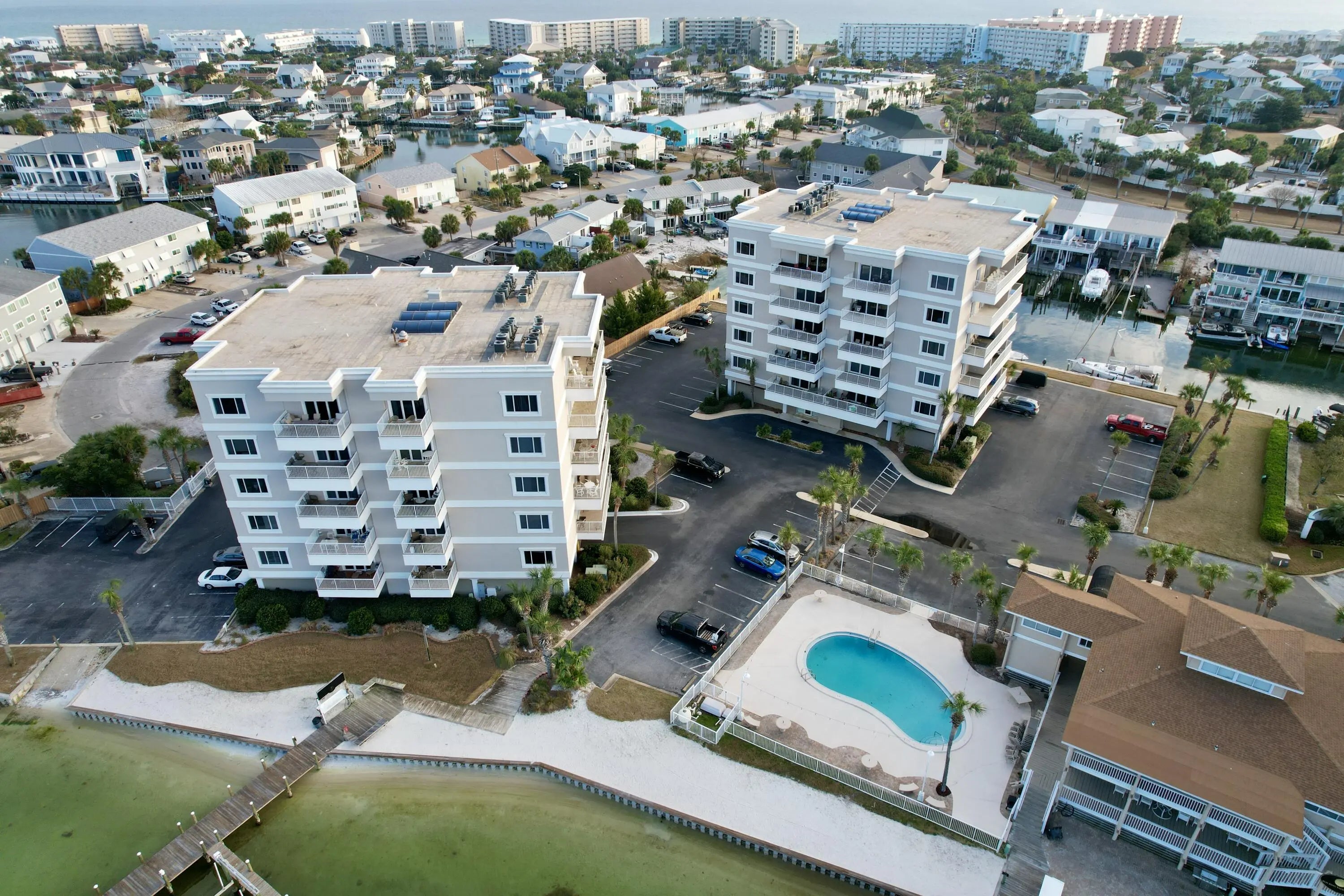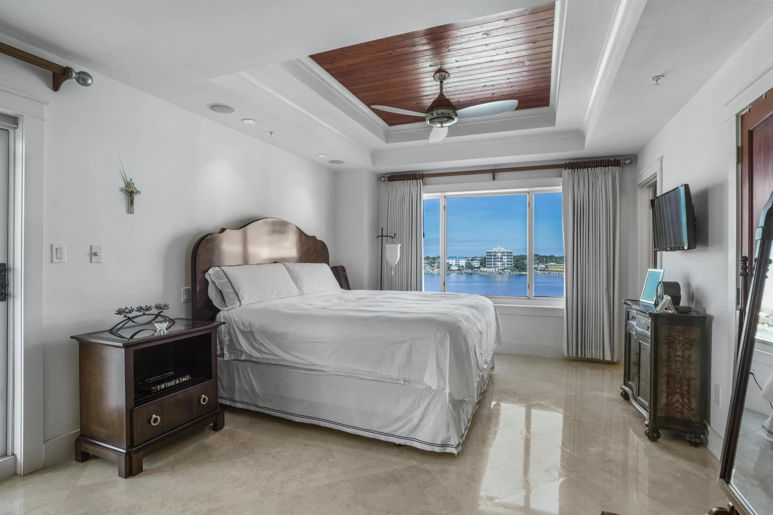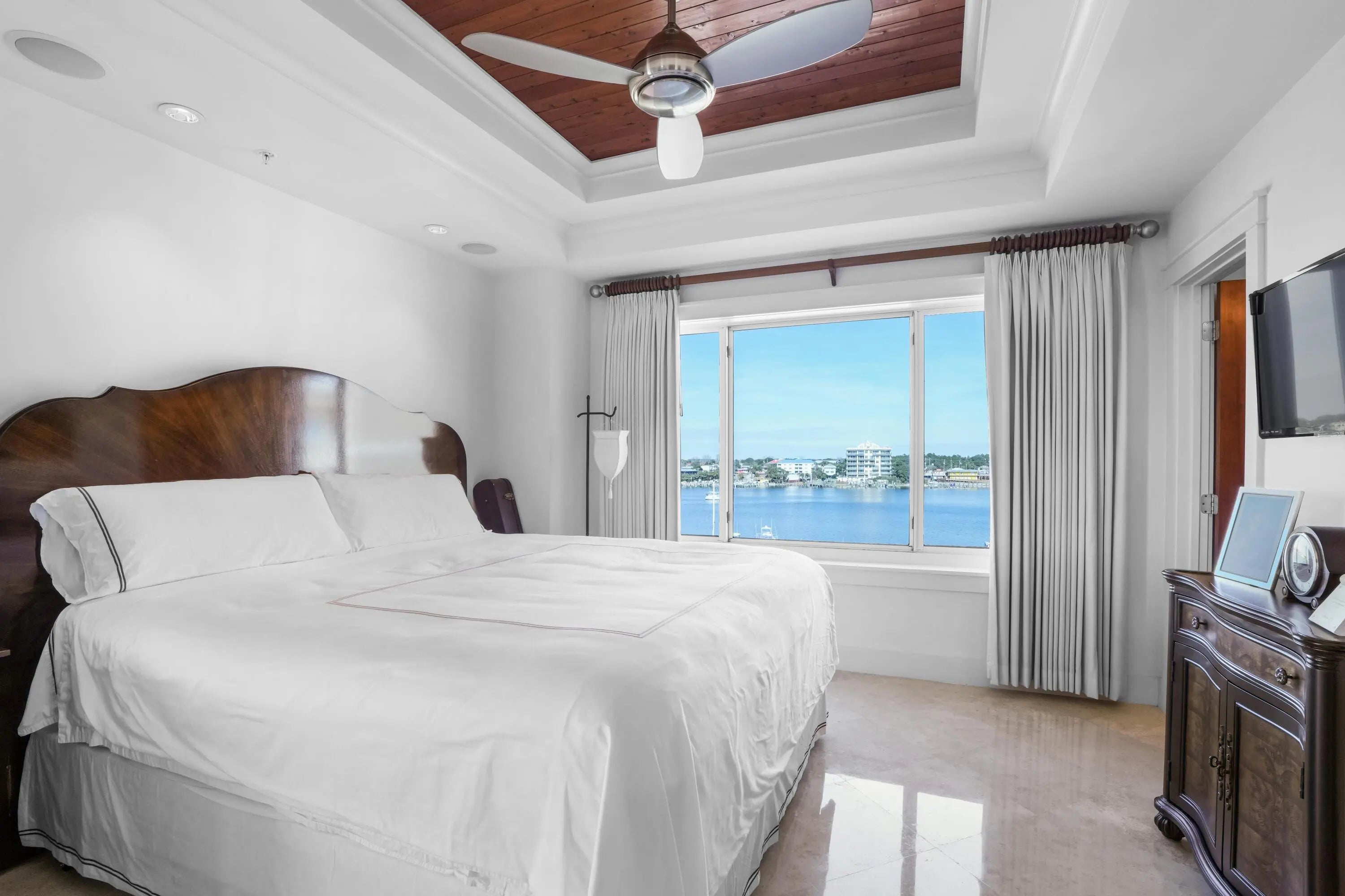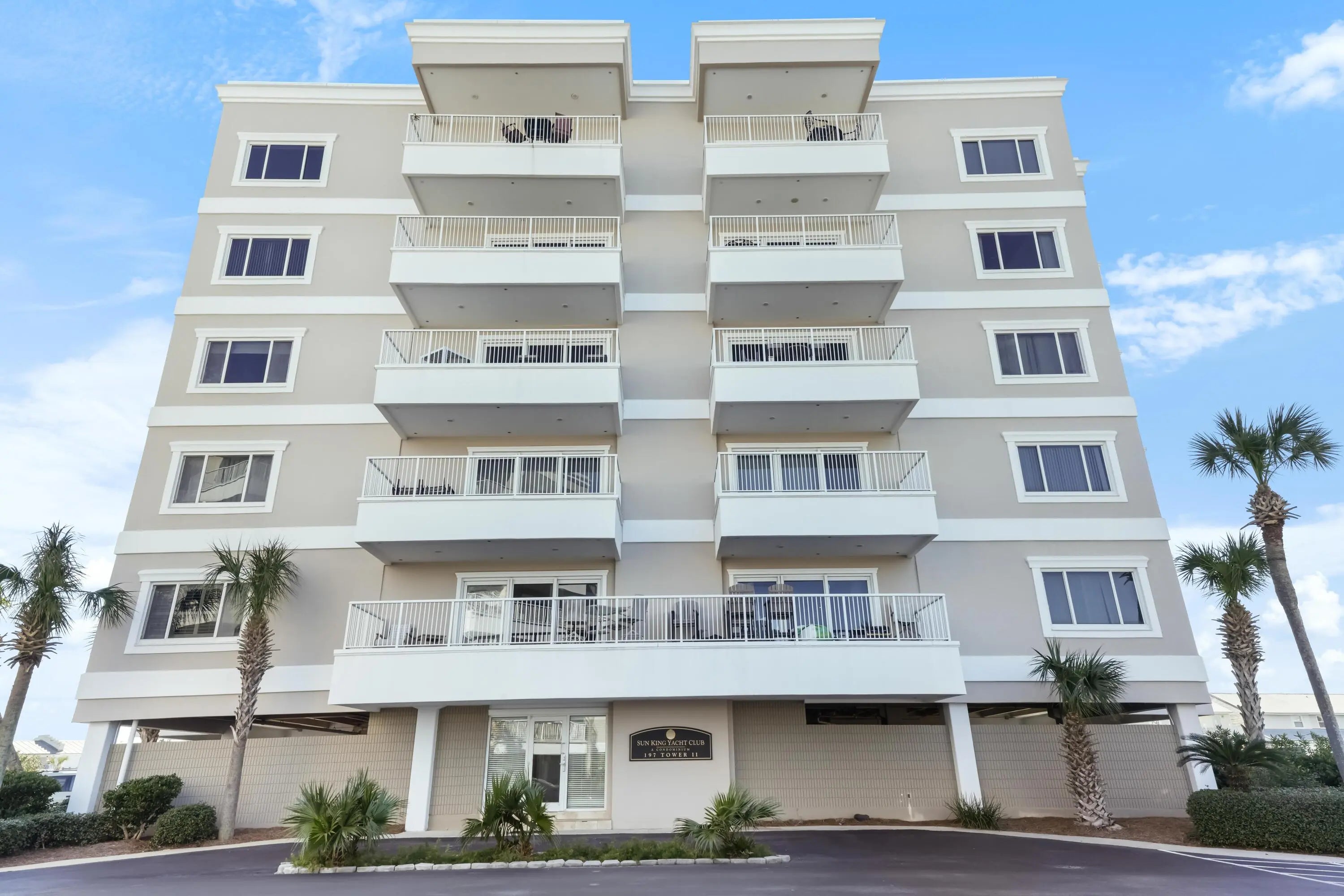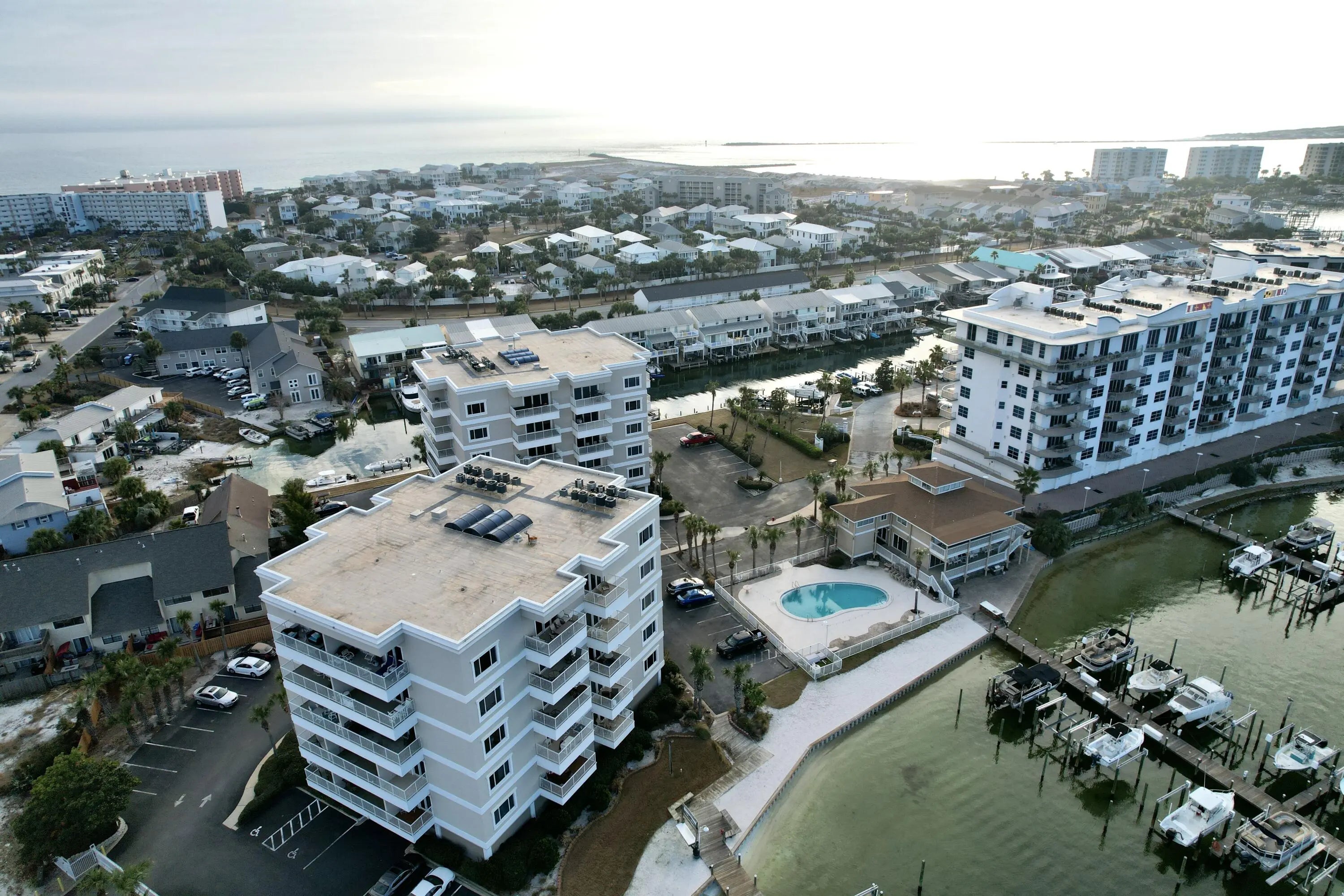 Welcome home to your meticulously maintained, Stunning 5th floor condo providing you with the finest lifestyle Destin has to offer including Beach & Boaters Paradise! Potential boat slip based on availability upon purchasing this condo at Sun King for your Boat! Hop on your vessel & you're Just 5 minutes to Crab Island & the Destin Pass, Gulf of Mexico & the Intercoastal with a plethora of fun to be had fishing & boating! The Beach is rather your thing? No Sweat, 2 private deeded beach accesses as well as 2 other public beach accesses are a very short distance away! Walk, Bike or take the golfcart to the beach easily! Not only are the views spectacular from this condo you can even watch the flight shows & fireworks right from your balcony! Prepare to be awestruck the moment you walkin the door of this unique condo encompassing so many unparalleled details. Custom cherry full height cabinets adorn the kitchen complementing the gorgeous marble countertops in this open kitchen with tons of storage. Perfectly flowing into the living room with views stretching across the beautiful harbor waters. You can't miss the elegant wood detail on the ceiling in the living room & master bedroom. Unique to this unit, the owner was grandfathered in with stunning tile on the balconies creating the seamless flow from inside to outside. Both master & guest bedrooms have superb water views & hurricane rated glass sliders welcoming you onto the spacious balcony. With Views facing South, West and North, this retreat presents you with the most Spectacular Scenes of Destin's East Pass & the Gulf of Mexico as well as the Harbor! So fun watching the dolphins right from your window or the boats come & go all day! Spend mornings sipping coffee on the large balcony as you watch all the fishing boats head out the pass for a day of angling in our famous plentiful waters & after a fun day in the sun at the beach, in the pool or on your own vessel come home to breathtaking sunsets in your private oasis, or out on the boat for a sunset cocktail cruise watching the picturesque sky display breathtaking colors over the emerald green waters this area is famous for. This rental restricted community is convenient to shopping, dining, entertainment, boating, fishing, kayaking, paddleboarding, all the things to enjoy your new beach life within a short walk or drive. You can even take your golfcart around Holiday Isle or across to nearby shopping & restaurants! Stroll down to your poolside and jump on the water taxi from the docks for a ride to Harborwalk Village or any other harbor front establishment, they even run late night to get you home safely after an evening of fun! Bonus: the clubhouse has an ice machine for you to conveniently fill up your coolers for the beach, pool, or boat! Seize this opportunity to own a small piece of Destin's Luxe Life & Begin Living your Dream, Making Memories Now!
