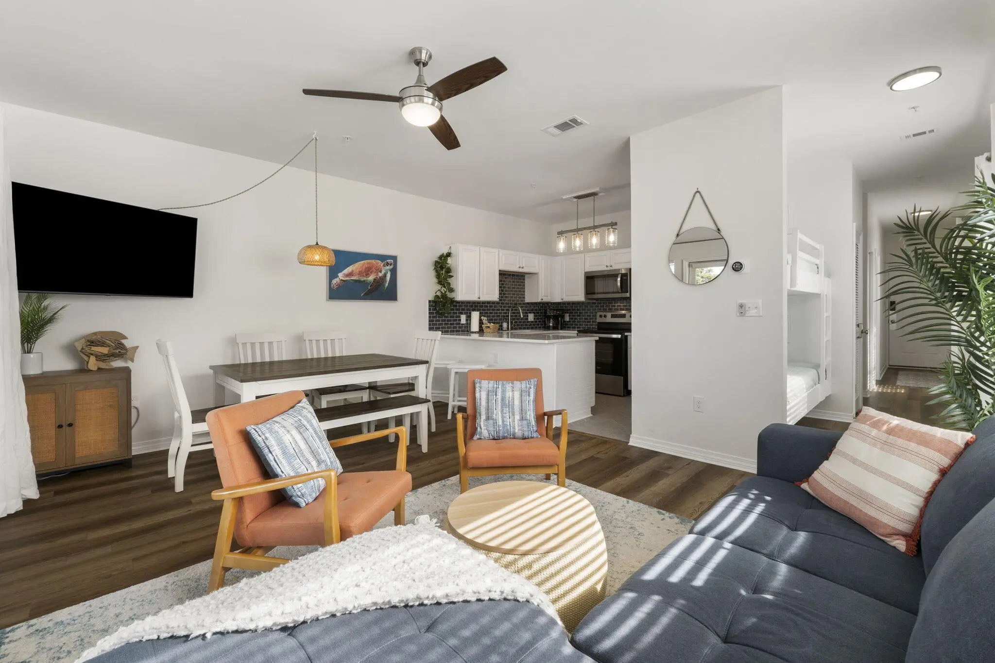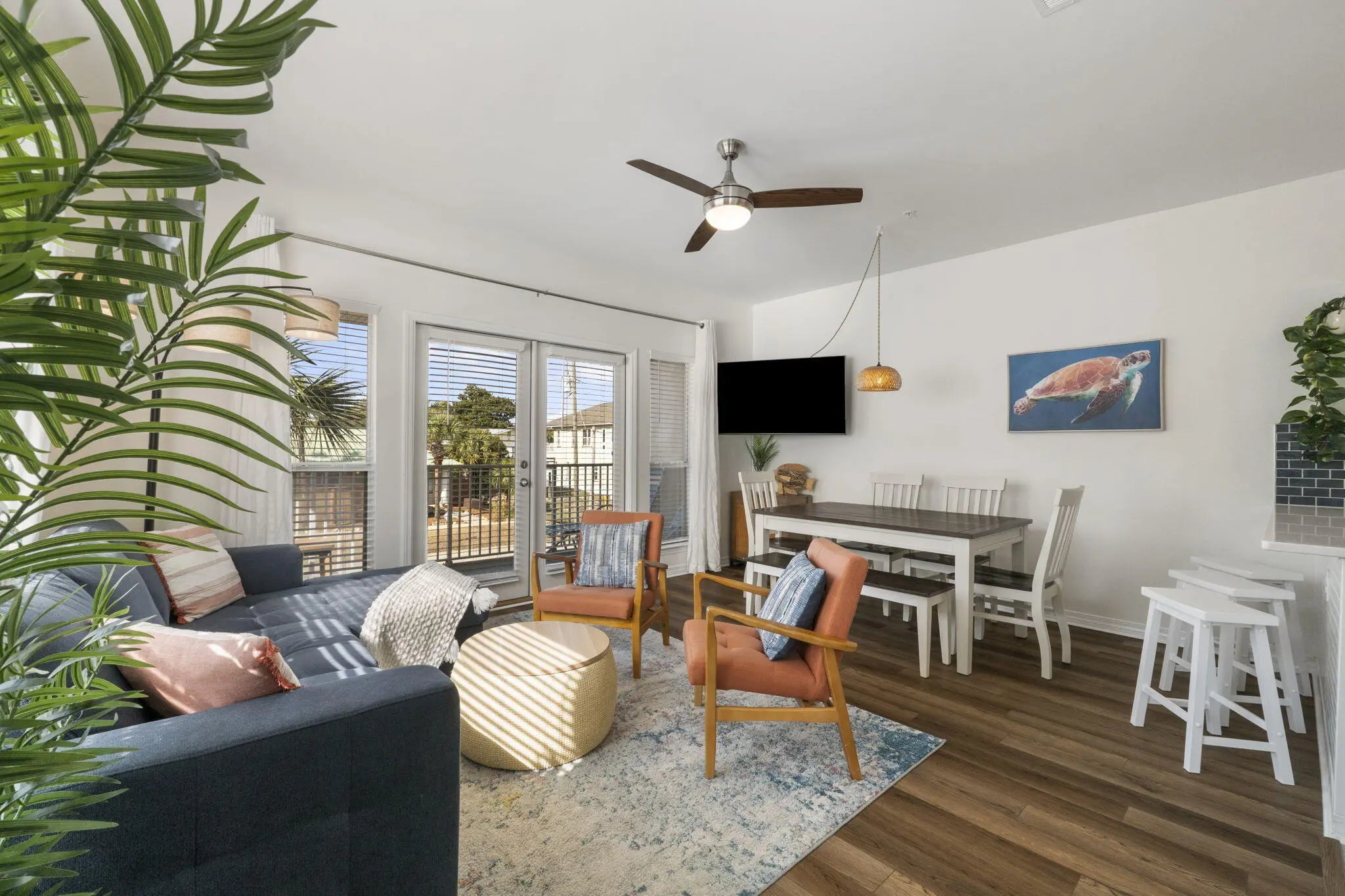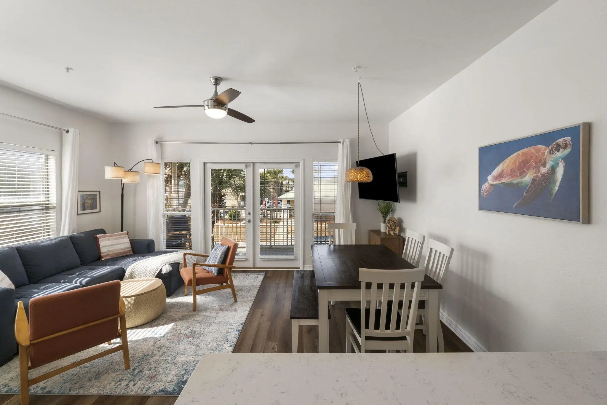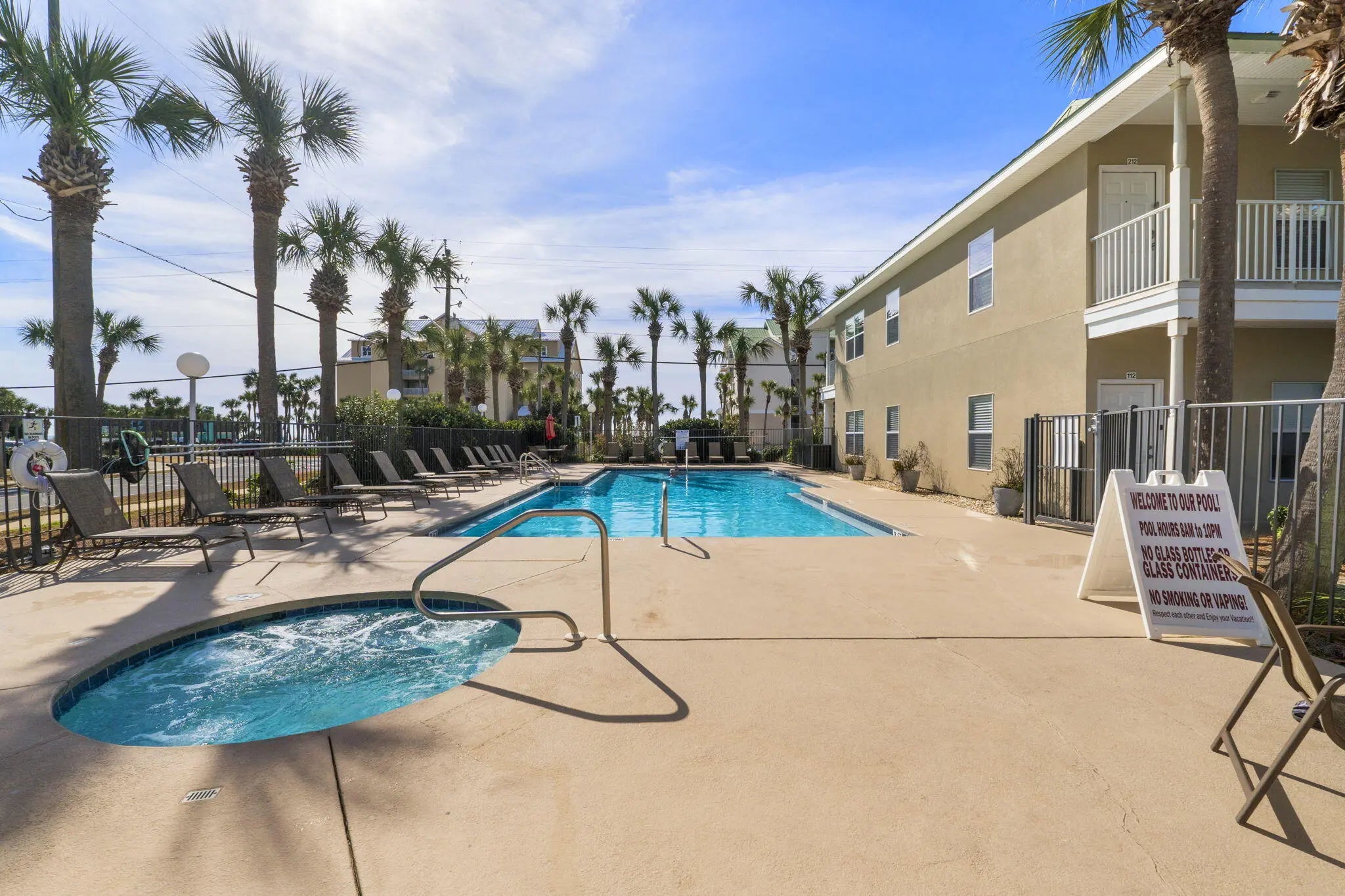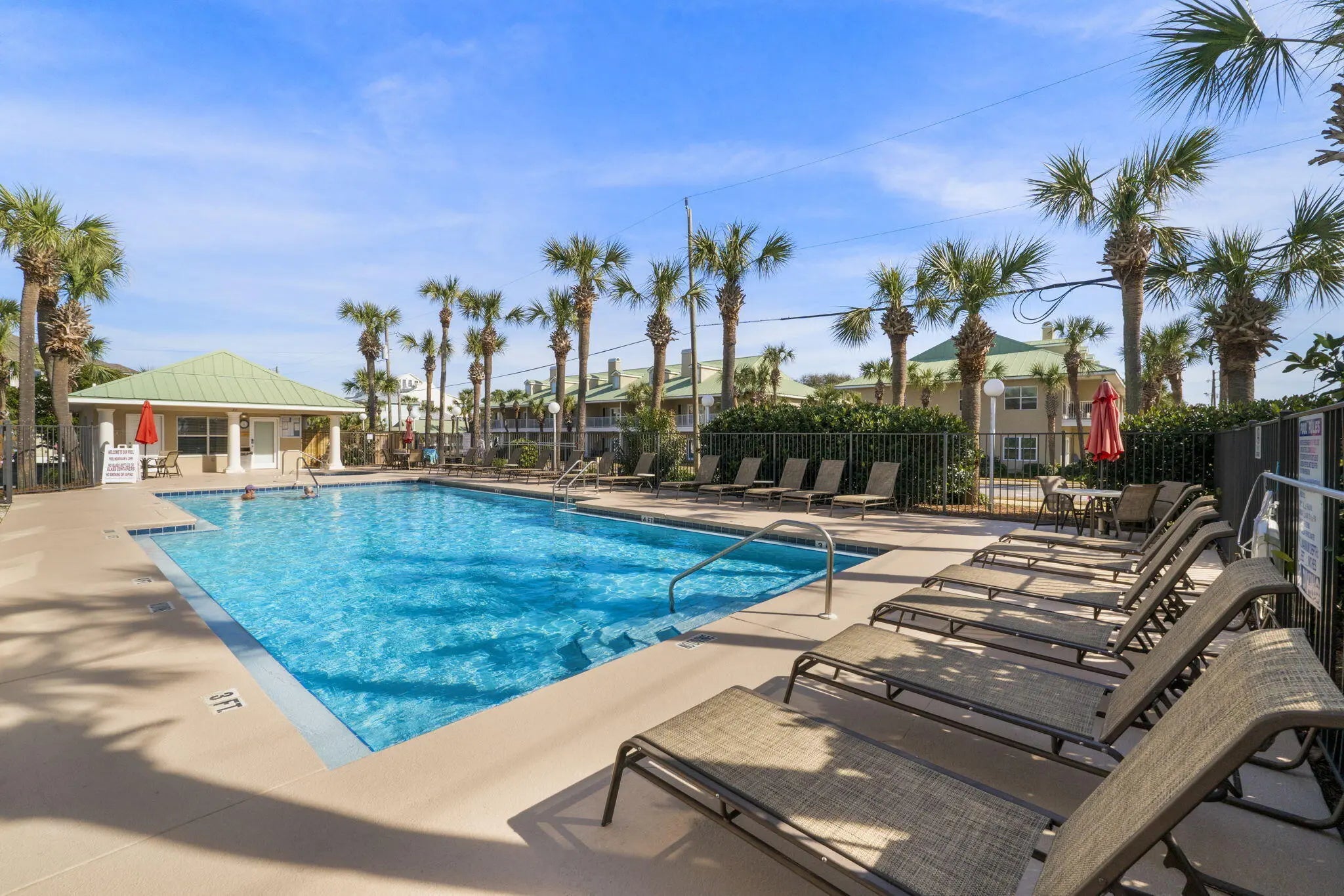 Turnkey condo with deeded beach access - this is the property you've been searching for! Caribbean Dunes is located in the heart of Crystal Beach, providing easy access to the beach and being within walking distance of restaurants like Camille's and local shopping. This one-bedroom, one-bathroom unit comfortably sleeps six, featuring cozy hallway bunks and a sleeper sofa in the living room. Enjoy added privacy, as this condo is on the top floor and is an end unit, offering three additional windows that make it unique and bright. You can relax in the spacious balcony, where you can feel the Gulf breeze and enjoy views of the community pool, with views of the Gulf of Mexico!Recent updates include a new stackable washer and dryer (2024), newer appliances, and a new water heater (2023) and HVAC system (2021). Caribbean Dunes offers a heated pool, hot tub, grill area, two unassigned parking spaces, an outdoor storage closet, and a club room. This is an excellent investment opportunity or a perfect second home! Schedule your showing today!