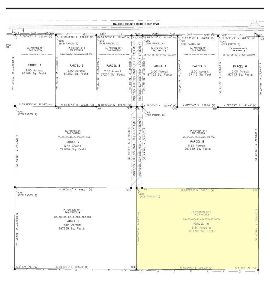 Located in the County, this flat, cleared 6.84 Acre parcel is just off of Co. Rd. 65 on Co. Rd. 16, in Foley. It is zoned Rural Agricultural so you can do anything as long as it's for personal use. Build your dream home, put in a mobile home or set it up for your Rv. You can even build a barn to store your toys. There is NO HOA. Perfect location, central to Foley, Bon Secour, Gulf Shores and Magnolia Springs PIN # 32754 for the whole parcel -new PIN numbers will be assigned once lots are purchased. Buyer to verify all information during due diligence.