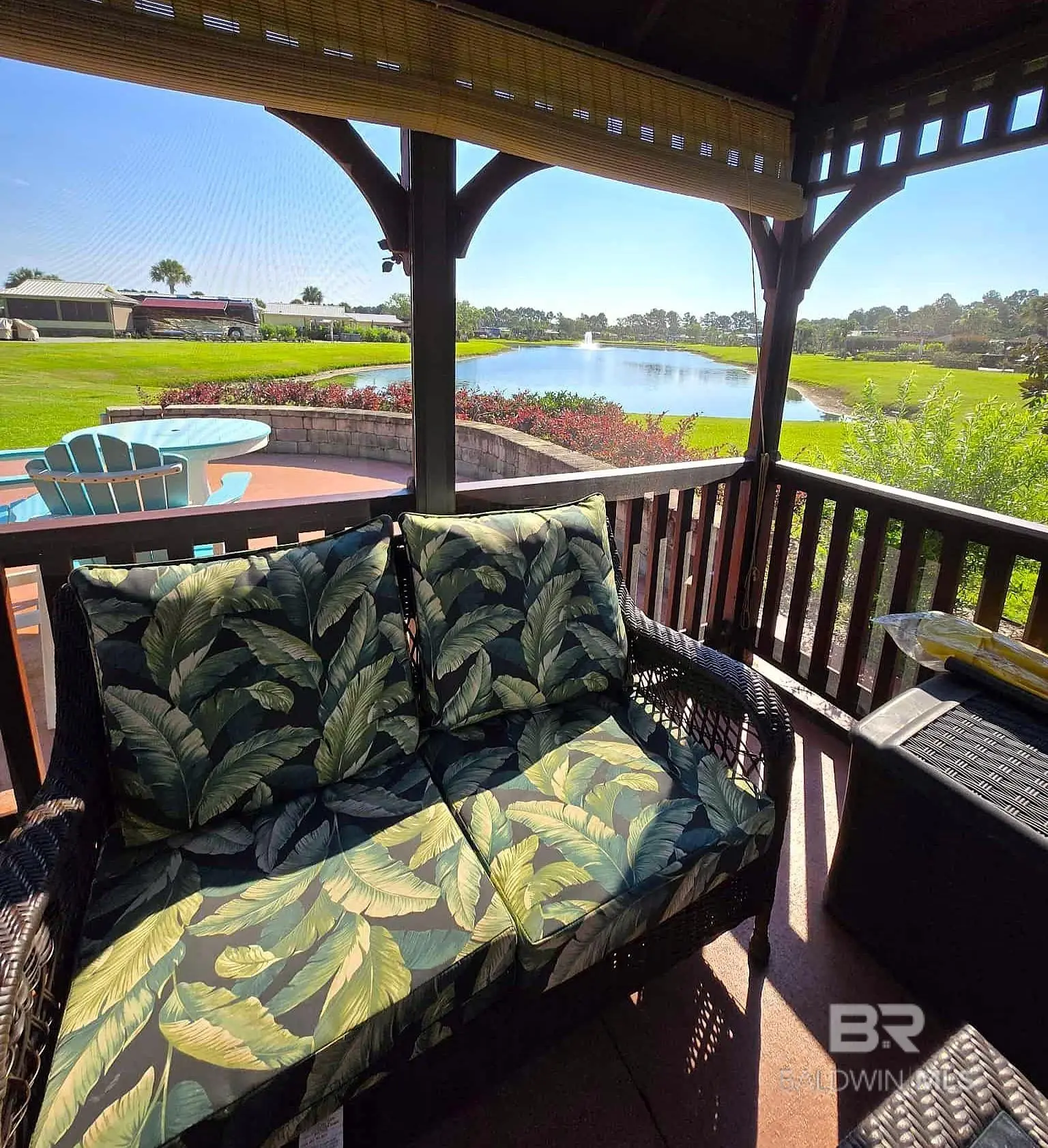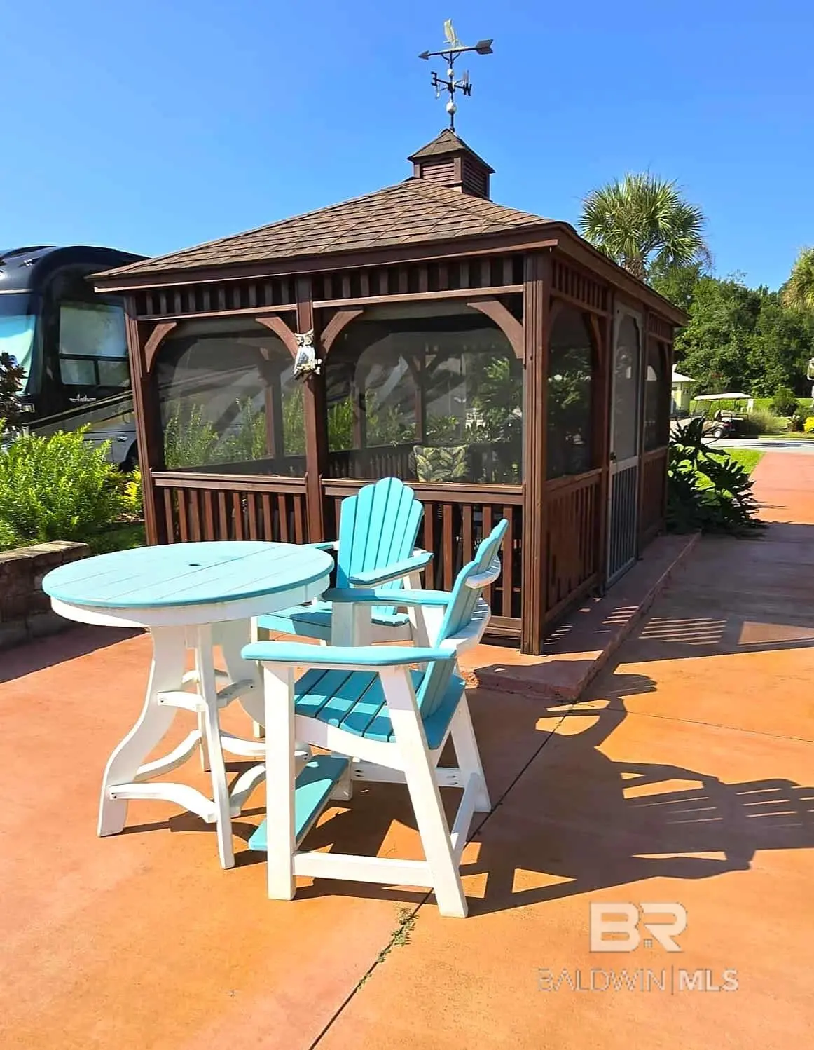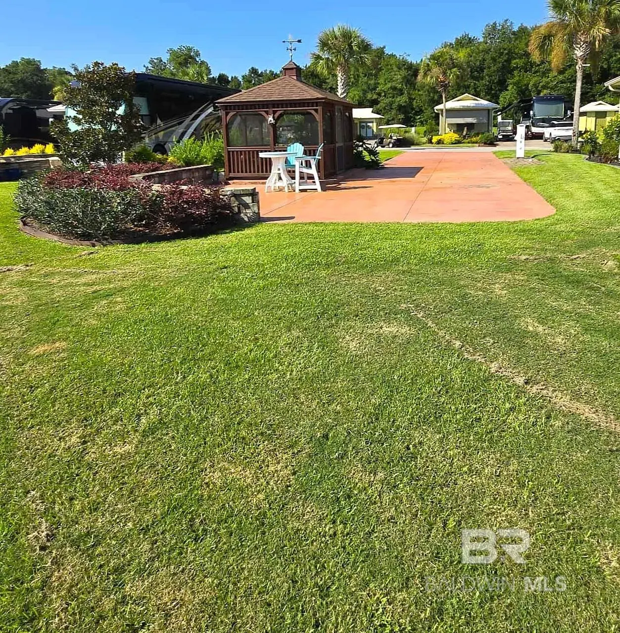 Luxury Class A (15 years or newer & 32' or greater in length) and SUPER C (10 yrs or newer & 32' or greater in length) Motor Coach Resort rated #1 in the South and in the Top 5 RV Resorts in the United States. Premium Lakefront site offers a Northeastern exposure with a beautiful extended view of the lake and fountain. The lot features a large 10' x 14' screened gazebo with a rattan conversation set complete with comfy cushions. There are pull-down shades inside the gazebo for added shade and privacy. Entertain friends on the extended patio with outdoor seating including two high-top chairs and table. This lot also features a stacked block retaining wall and lush, mature landscaping for added privacy. Resort amenities include a 6,000 sq ft clubhouse, zero entry infinity edge pool, hot tub, well-appointed fitness center, wet/dry sauna, movie theater room, stocked lake, dog parks & dog wash, and daily activities for guests. Low COA fees and property tax! Buyer to verify all information during due diligence.