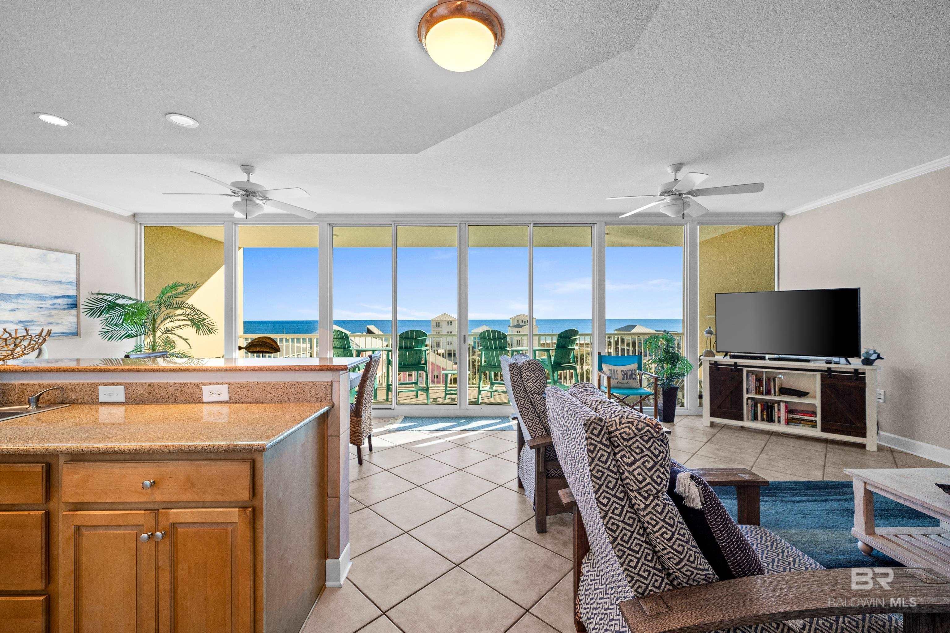 Experience coastal living at its finest in this beautiful 5th floor condo unit at Sanibel in Gulf Shores. Boasting panoramic views from floor-to-ceiling windows, this residence offers breathtaking views of the sparkling Gulf Shores beaches, all from the comfort of your spacious private balcony.This prime location is just a short stroll across the street to the renowned white sand beaches of the Gulf Coast, providing the perfect balance of convenience and tranquility. Enjoy being minutes away from popular restaurants and entertainment venues, yet far enough to escape the crowds.The condo is fully furnished and features two spacious bedrooms, each with en suite bathrooms that include tiled showers and double vanities—perfect for guests or family. The fully equipped kitchen showcases elegant granite countertops, ample cabinet space, and a breakfast bar that seamlessly connects to the dining area, ideal for entertaining.With tile flooring throughout, this unit is both stylish and easy to maintain. The complex offers fantastic amenities, including an outdoor pool and hot tub, fitness room, sauna, and an outdoor grilling area for those sunny days spent with friends and family.This condo has a proven rental history, with an impressive rental income of $51,302 in 2022, showcasing its potential as a lucrative investment. Since then, it has been used for personal enjoyment, making it a perfect investment or permanent residence.Don’t miss your chance to own this slice of paradise in Gulf Shores. Schedule your viewing today! Buyer to verify all information during due diligence.