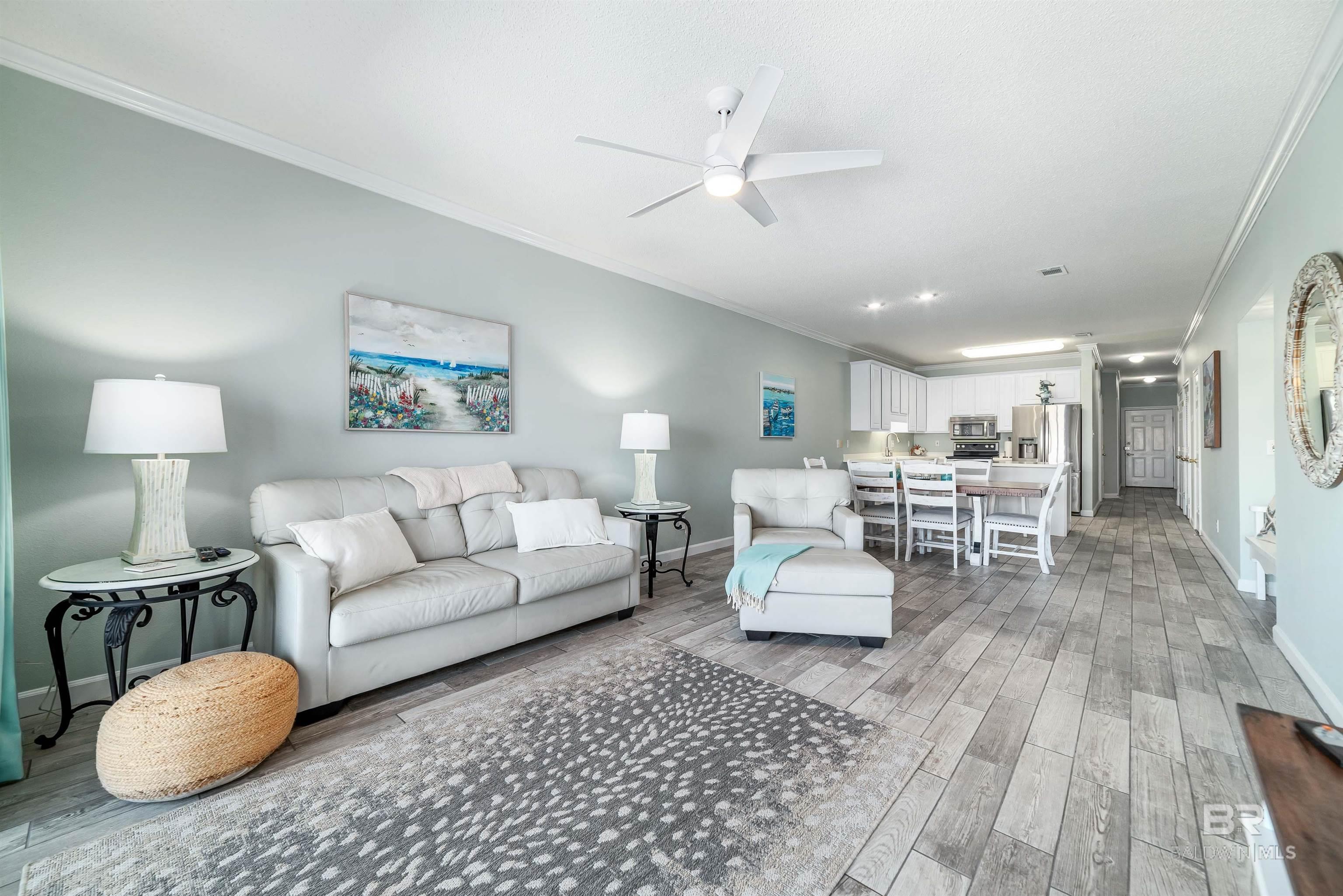 Attention all boaters and beach lovers! This is your chance to own a phenomenal 3-bedroom, 3- bath unit in a highly sought after complex on Old River in Orange Beach. Dolphin Harbor is a low-density (only 27 units), gated building that offers the best of both worlds with deeded beach access just across the street and ample first come first serve boat slips steps away from your front door. Unit 2B features upgraded flooring throughout the main areas, updated cabinetry and fixtures, recessed lighting, crown molding, all stainless-steel appliances, primary bathroom offering a dual vanity with his/her sinks, jacuzzi tub and separate shower. Both the living room and primary bedroom lead out to a private balcony that allows you to unwind and enjoy the peaceful sight of boats passing by. This complex is in a great location with close proximity to The Pass in case you want to take advantage of Alabama's amazing fishery, only a few minutes by boat to Robinson Island / Bird Island, close to numerous restaurants and is an easy commute to see the Blue Angels take flight. Property amenities include a riverfront outdoor pool, 1st come 1st serve boat slips (the association offers the ability to reserve boat slips when requested and approved), fishing pier, fish cleaning station with water/power available, kayak storage, tennis court and BBQ area. New elevator (2022). Act fast to take advantage of this rare opportunity to own in a low-density private complex that offers both boat & beach access! Unit is non-rental, turnkey and easy to show! Buyer to verify all information during due diligence.