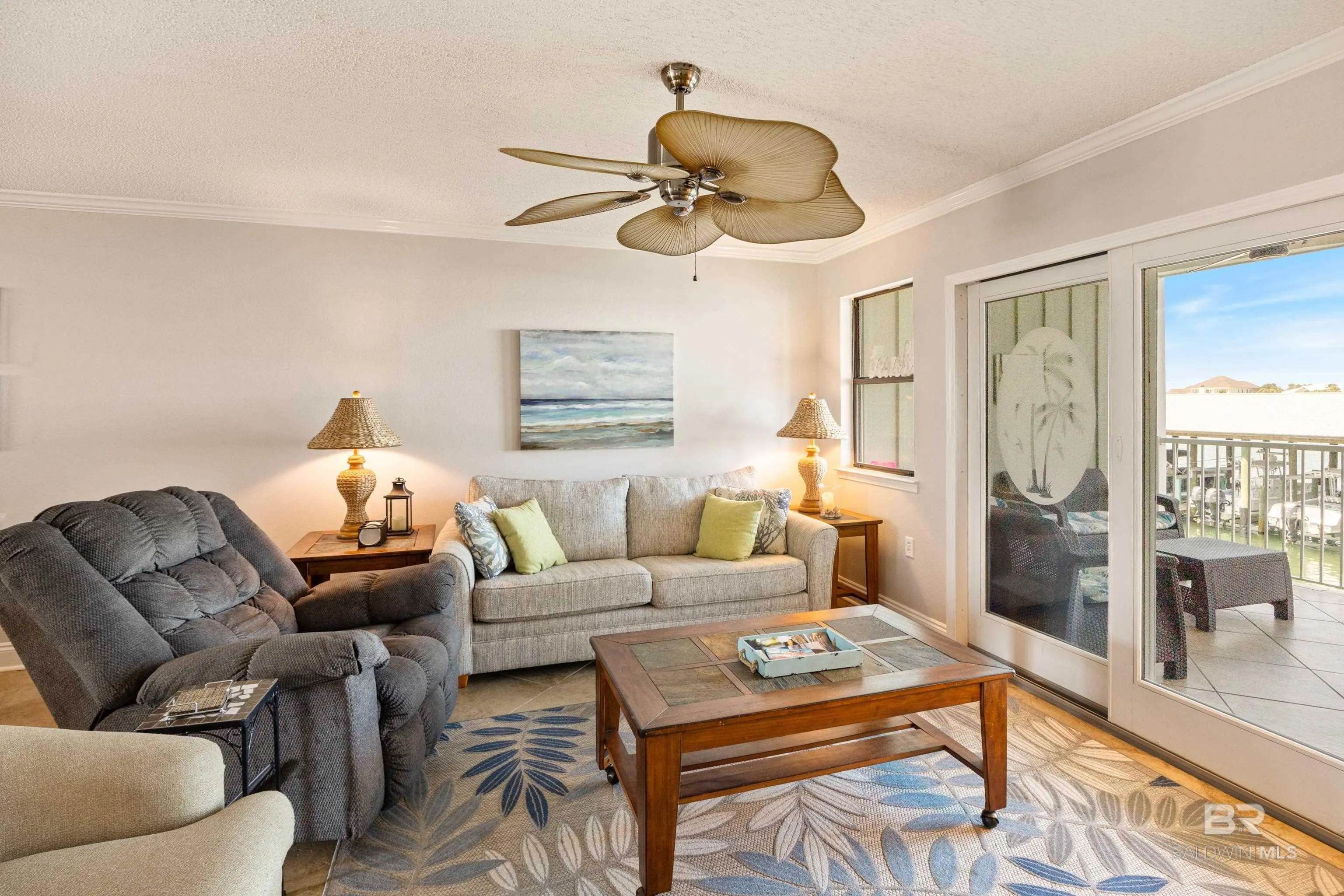 Waterfront Living at its finest! This pristine condo is situated along the Intracoastal Waterway, offering captivating water views from every room. Relax on the spacious, tiled balcony as boats glide past, or step inside to a beautifully appointed kitchen featuring custom cabinetry and granite countertops. The condo features durable tile and luxury vinyl plank flooring throughout, complemented by a tasteful neutral color scheme. Hurricane-rated sliding glass doors connect both the living area and primary suite to the balcony. Located in the sought-after, low-density Jubilee Landing, this property offers quick Gulf access and is less than a mile from the iconic Flora-Bama. Owners enjoy covered parking, exterior storage lockers, boat and trailer storage, and first-come, first-serve boat slips! Short-term rentals are permitted, making this an ideal investment or personal retreat. Don’t miss this opportunity—schedule your showing today! Buyer to verify all information during due diligence.