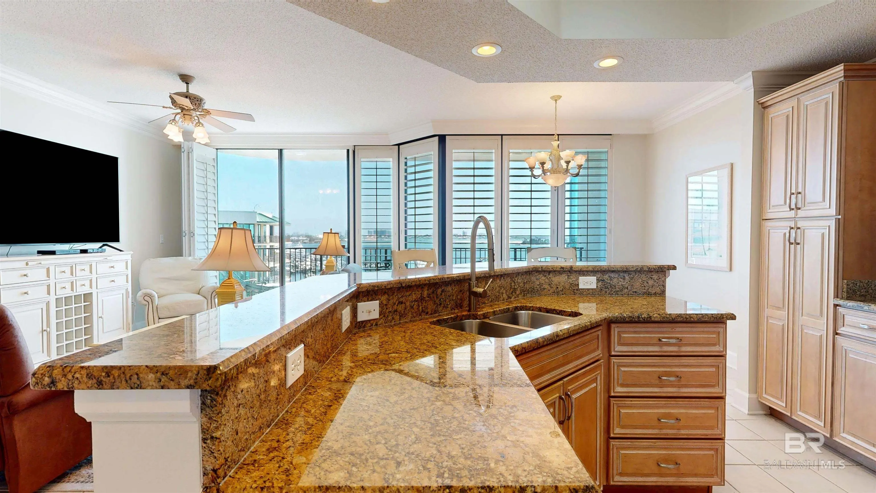 Experience resort-style waterfront living with the best of view in the building in a true boater’s paradise at Phoenix on the Bay in Orange Beach. This beautifully furnished 2-bedroom, 2-bath condo offers 1,308 square feet of living space on the 5th-floor top level, featuring stunning bay views overlooking Terry Cove. The open living and dining area is filled with natural light and flows seamlessly to a spacious balcony. The kitchen is well-appointed with granite countertops, ample cabinetry, breakfast bar seating, and a full appliance package including. The primary suite offers a spacious layout with a garden/jetted tub, separate shower and generous storage. The guest bedroom provides comfortable accommodations for family or guests. Tile and carpet flooring throughout. This unit conveys with deeded boat slip #58, offering a rare opportunity for true boat-to-condo convenience. Phoenix on the Bay is a gated, amenity-rich community featuring indoor and outdoor pools, a lazy river, kiddie pool with waterslide, spa/hot tub, sauna and steam room, exercise facility, tennis courts, pickleball court, BBQ area, fishing pier, boat ramp, covered parking, on-site management, and private security. Ideally located on Canal Road with quick access to beaches, restaurants, and entertainment, this property is perfect as a primary residence, second home, or short-term rental investment. Buyer to verify all information during due diligence.